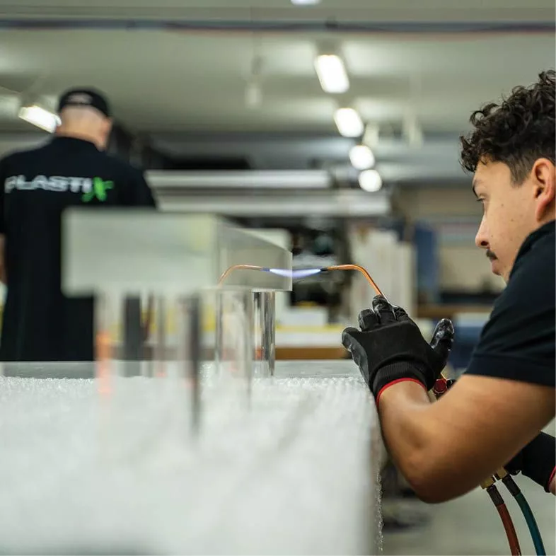 PETG is a chemical-resistant, impact-resistant, waterproof plastic that can easily be bent. It is ideal if you need to create round shapes. However, angular shapes are also possible with PETG.